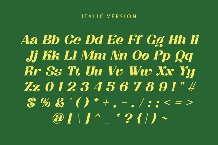 Jollyfish gives you all letters A–Z, numbers, and basic punctuation. It also includes italics for each character. You get flexibility to shape your ideas just how you want.