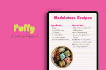 Introducing Puffy, bubbly font that’s as fluffy as a cloud! With its rounded, thick letters, Puffy is the perfect choice for adding a touch of playful and fun to your designs