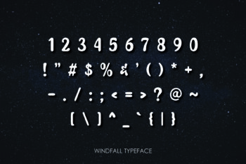 The Windfall font package includes everything you need to get started, including uppercase and lowercase letters, numbers, and basic punctuation.